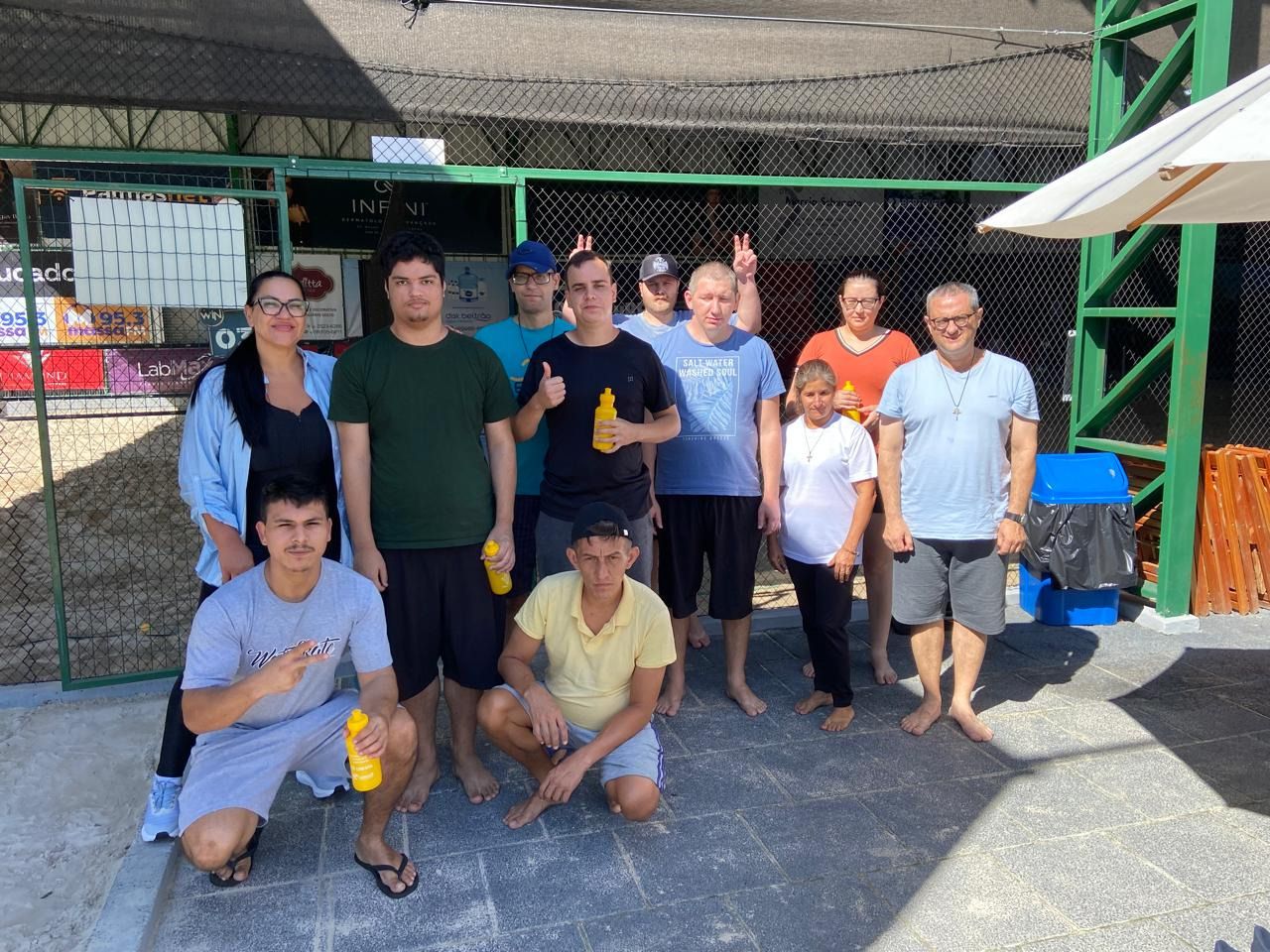 Os pacientes do Centro de Atenção Psicossocial Dr. Walter Alberto Pecóits (CAPS II) participaram, nesta semana, de uma atividade especial de integração e bem-estar: uma aula gratuita de beach tennis promovida pela Arena WIN. A iniciativa foi viabilizada pela sócia e gestora de esportes da arena, Juliana Karina Ramos, que acolheu o grupo e conduziu a experiência com dedicação e sensibilidade.